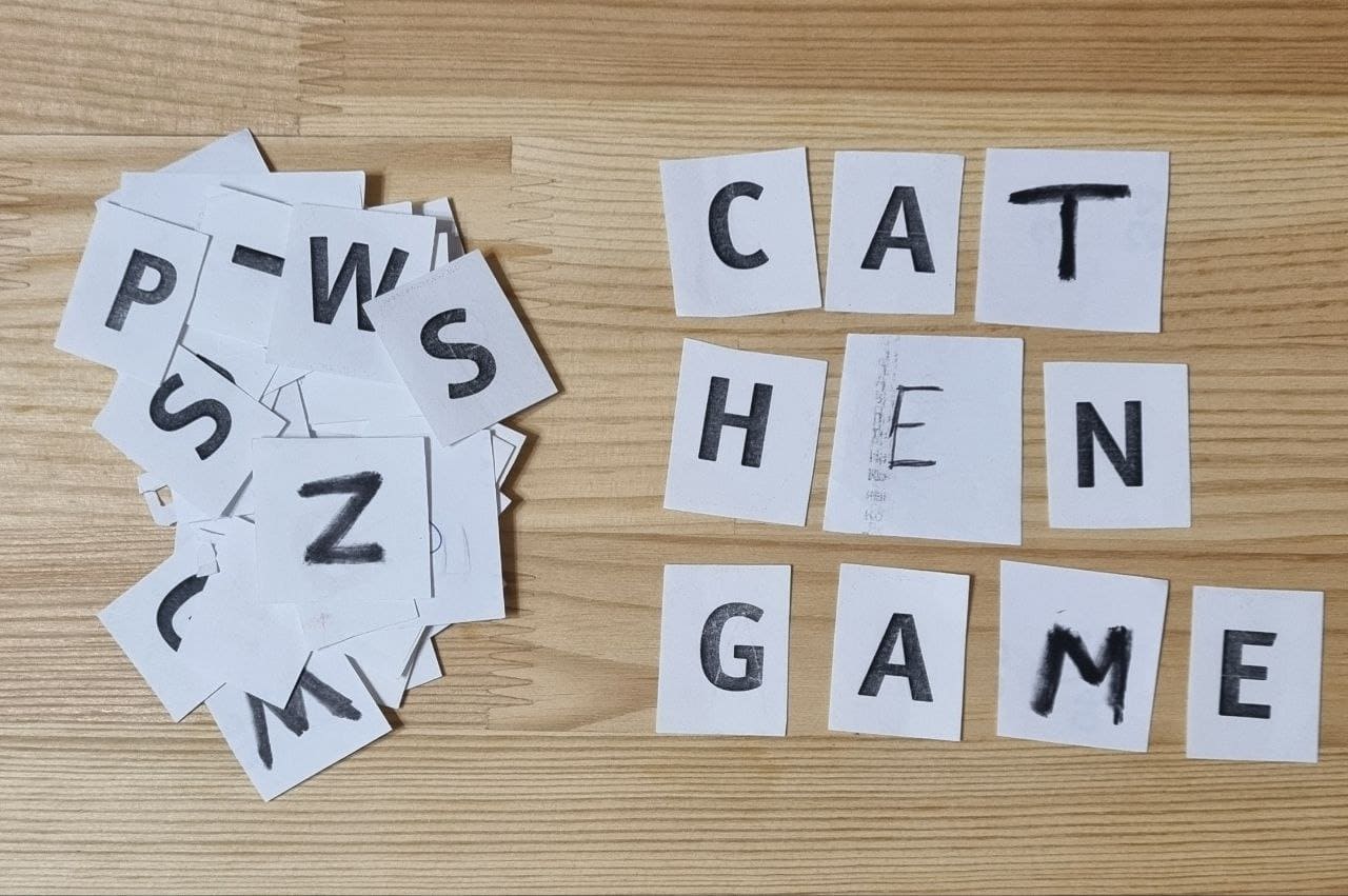 How can students learn the alphabet and letters and also remember the spelling of basic words? I suggest using cut-out cards with the letters of the alphabet. I ask a very young student to write all the words he or she already knows (usually there are only a few), and an older student, for example, to write the word “apple.” Students find this much more interesting than writing a traditional dictation. (pic 2).